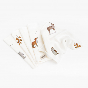 Sada 5 ks bambusových utierok zo 100% prírodného a biologicky rozložiteľného materiálu. Perfektné na utieranie citlivého nošteka bábätiek, na použitie ako podbradník alebo vreckovka pri jedle, namočená vo vode poslúži ako eko vreckovka pri prebaľovaní. Pre mamičky bude ideálna na umývanie tváre a odstraňovanie make-upu.